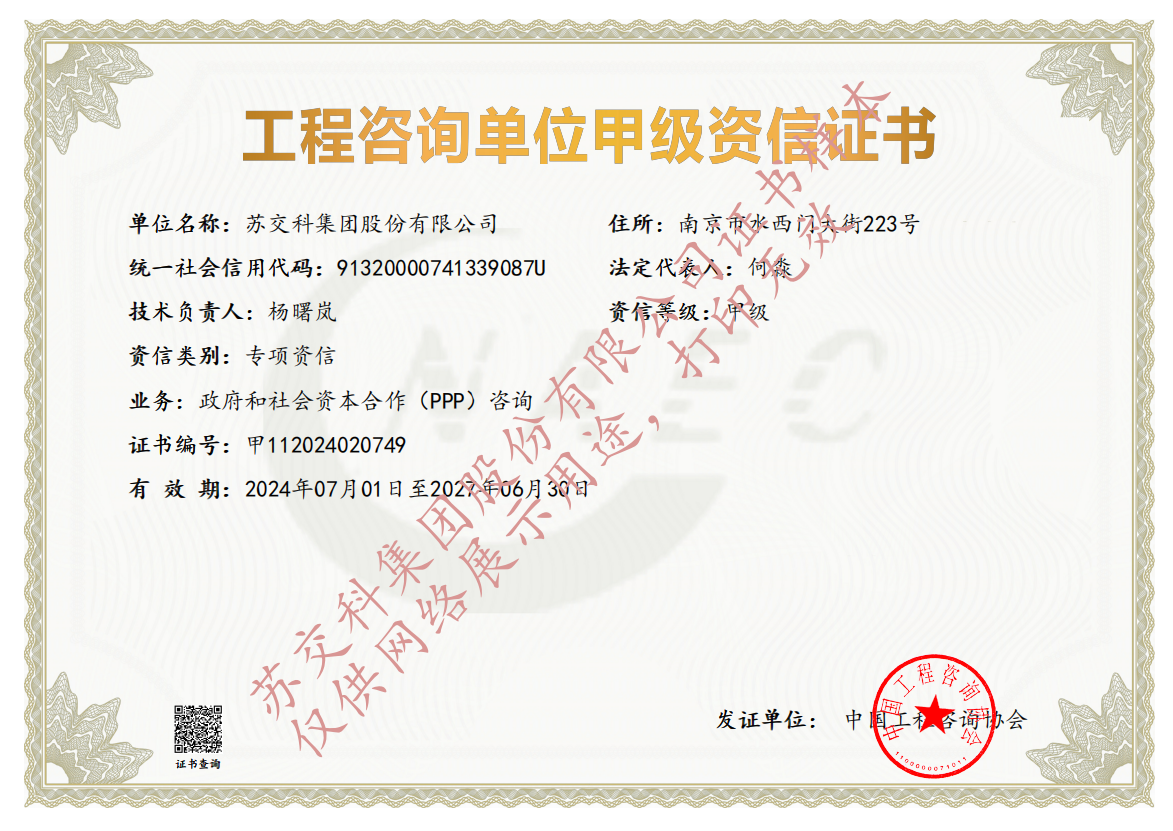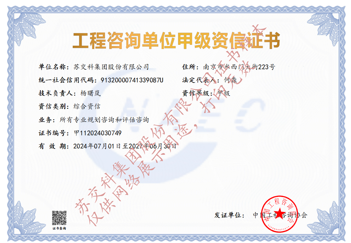 蘇科建設(shè)市政公用工程監(jiān)理甲級