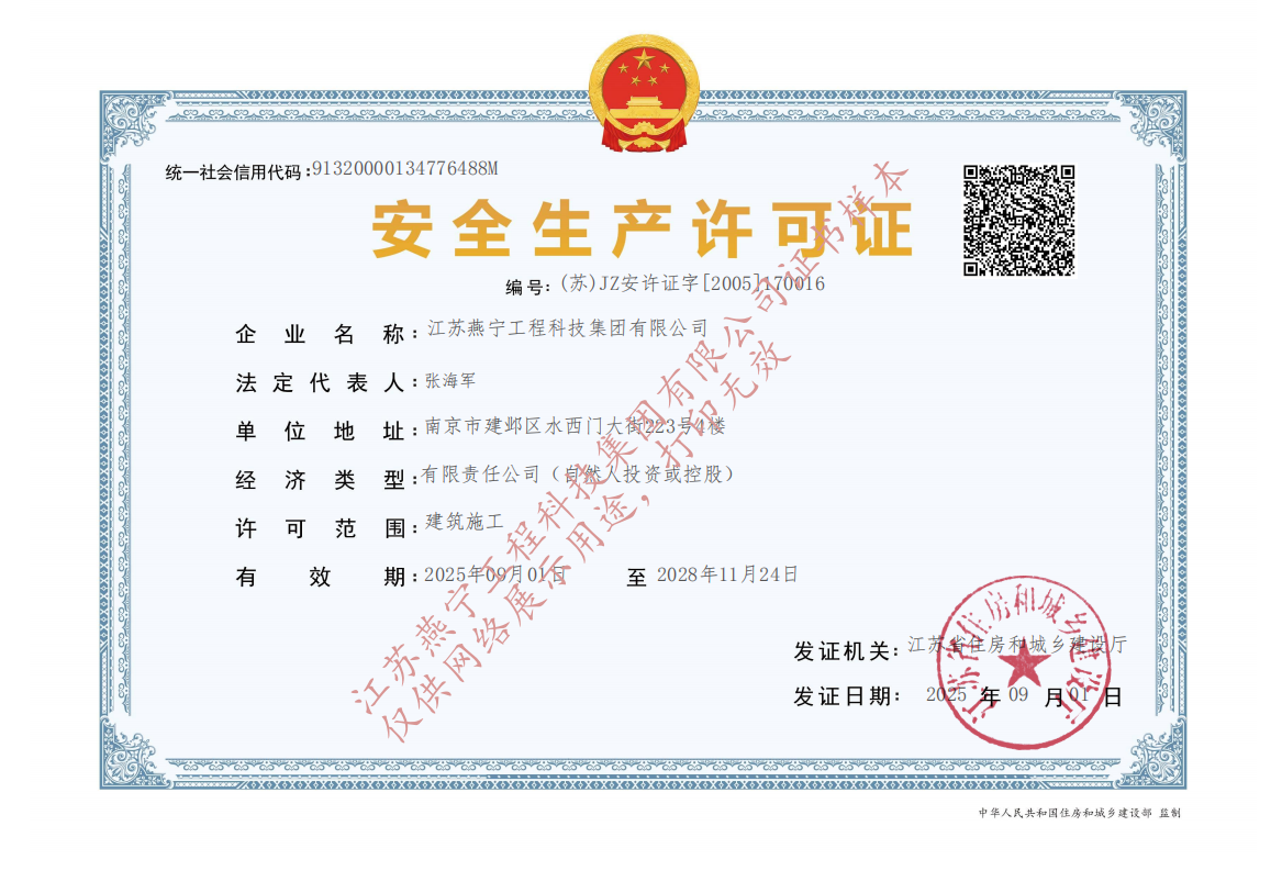 燕寧工科施工總承包壹級資質(zhì)